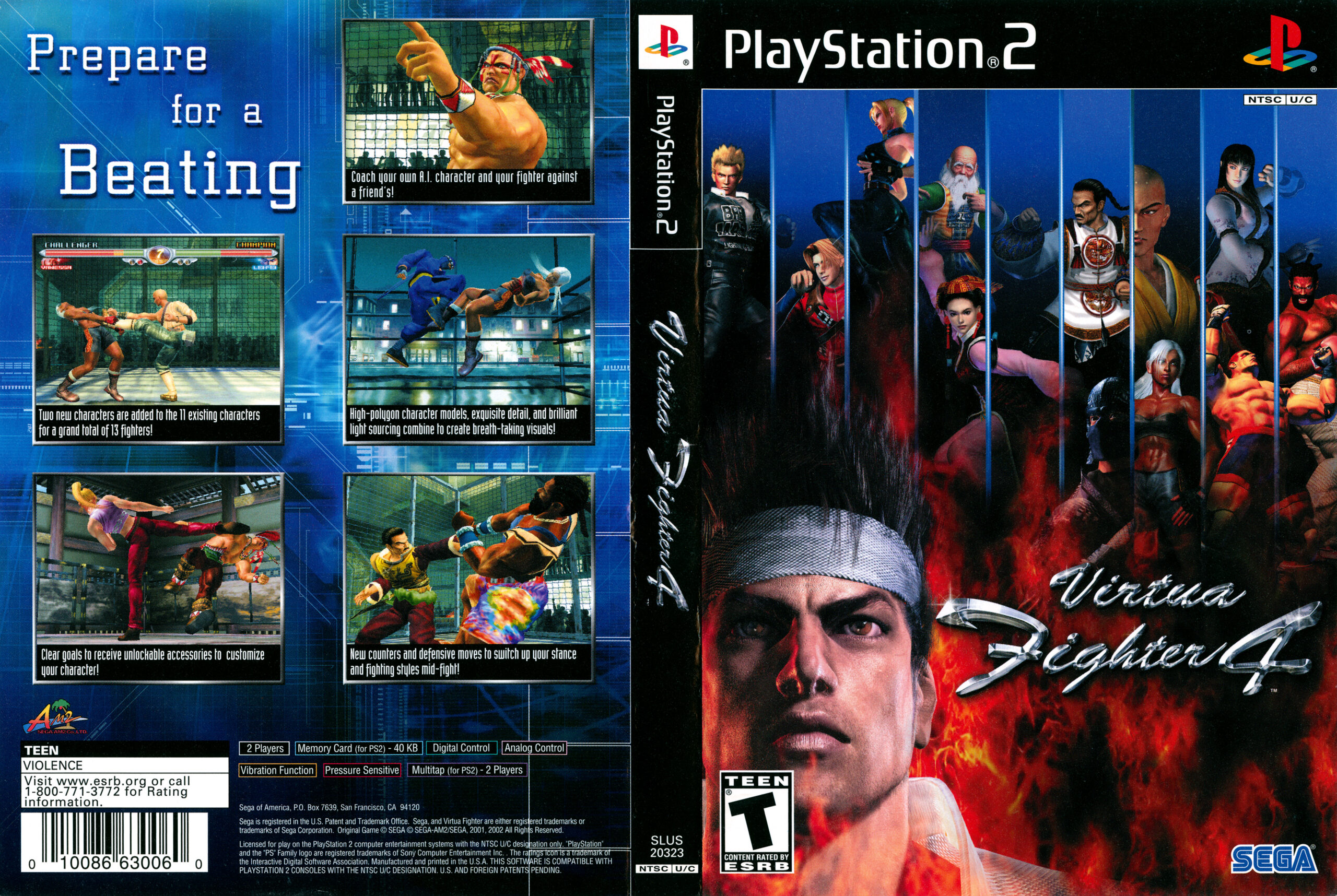 Visueel biedt Virtua Fighter 4 indrukwekkende graphics voor de PlayStation 2, met gedetailleerde karakters en omgevingen die de intensiteit van het gevecht versterken. Het spel heeft verschillende arena’s, van stadions tot futuristische omgevingen, die allemaal een eigen sfeer en uitdagingen bieden. Naast de singleplayer-modi bevat Virtua Fighter 4 ook uitgebreide multiplayer-mogelijkheden, waarmee je het op kunt nemen tegen vrienden of de computer in een reeks gevechten. Dankzij de balans tussen toegankelijkheid en diepgang blijft Virtua Fighter 4 een van de beste vechtgames op de PlayStation 2, ideaal voor diegenen die op zoek zijn naar een pure en technische vechtervaring.